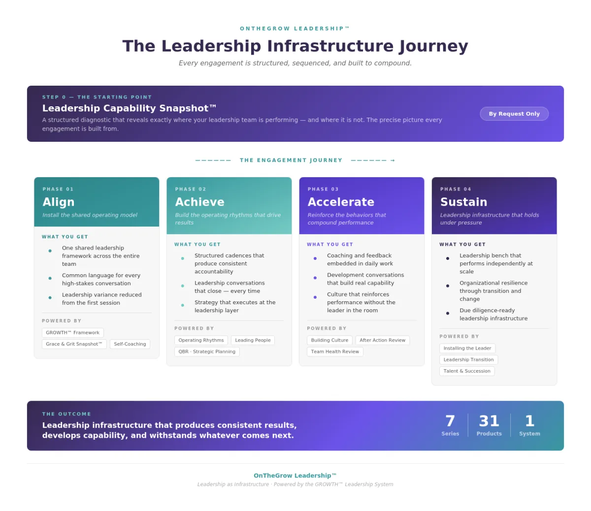 OnTheGrow Leadership™ designs, installs, and reinforces leadership capability as a system—so execution accelerates, cultures hold under pressure, and results compound.